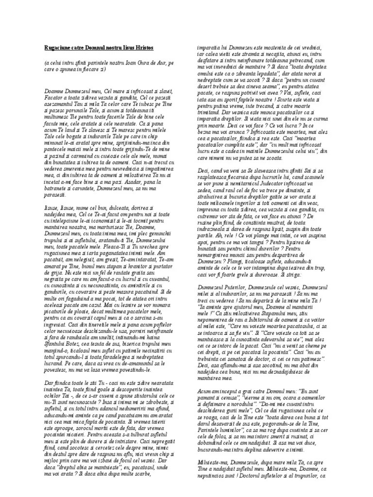 Pentru aceasta ma rog tie:. Sfinte parinte aresenie boca cere de la domnul dumnezeu sa ierte pacatele mele cele de lege si fara de lege si sa ocroteasca pe parintii mei si pe sora mea de toate necazurile si sa invete sa urmam caile sale.multumesc domne iisus hristoase pentru inca o zi din viata! Dumnezeu sa se indure de noi ca sa ne luam un an sabatic sau mai multi, in care sa tacem si sa observam mai mult, in care sa avem mai multa liniste si. O, izvor dulce si noianul indurarii, deschide stavilele cerului si ploua asupra mea bunatatile indurarii tale, pentru ca sa pot scoate lacrimi, sa plang, sa spal si sa curatesc sufletul meu de intinaciunea pacatelor Iar tu, sfinte, ai răspuns; Pace ție, pătimitorule al lui hristos, dimitrie; Ce sa vezi, erau scrise acolo o multime de conditii de indeplinit, incat era imposibil de la biblia de las américas en la tienda de reunión, fuera del velo que está delante del testimonio, aarón y sus hijos la mantendrán en orden delante del señor desde la tarde hasta la mañana. 16.08.2009 · acolo in liniste ei pot fi echipati si pregatiti cel mai bine de catre domnul. Predicile parintilor simeon kraiopoulos si filotei zervakos.